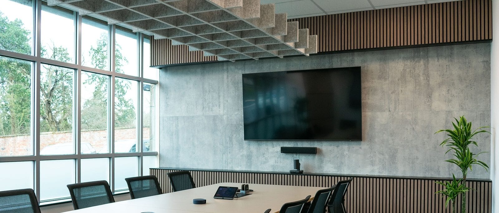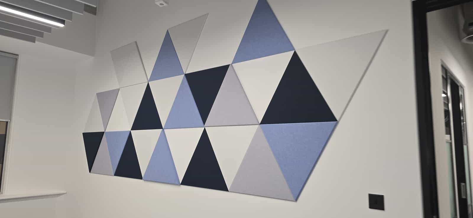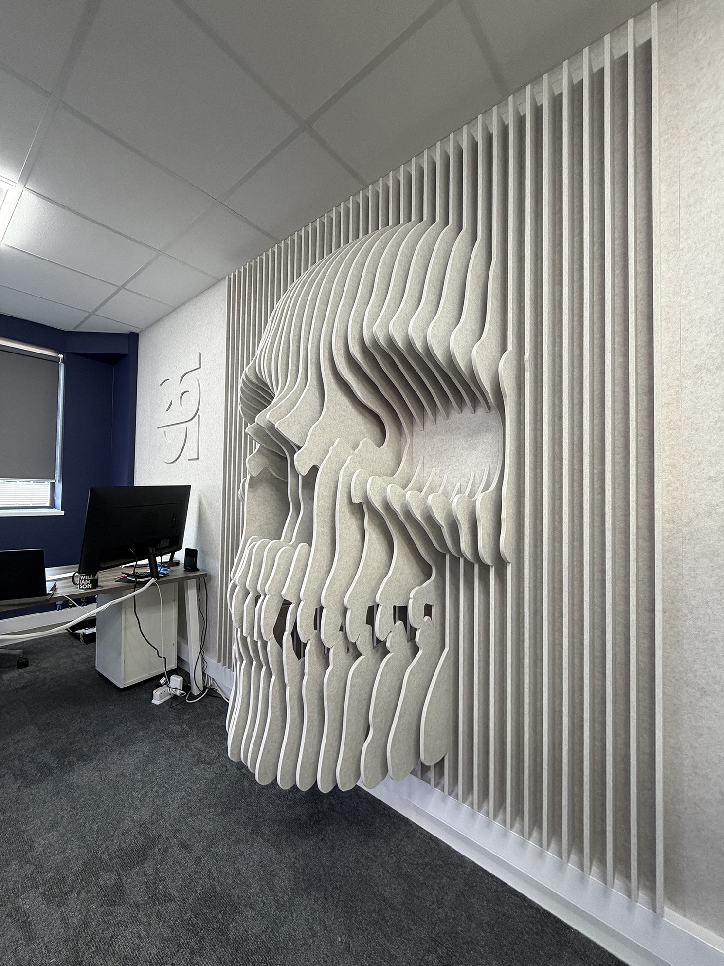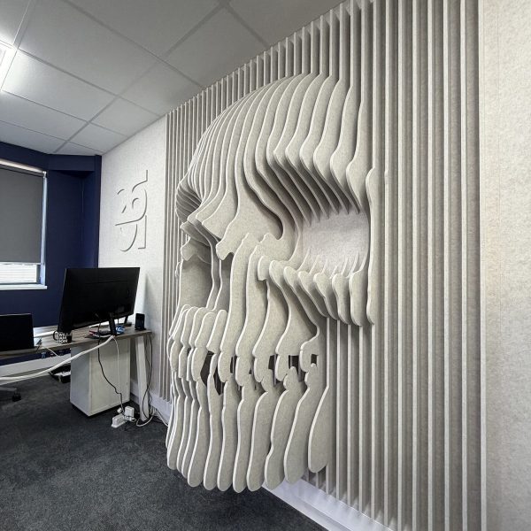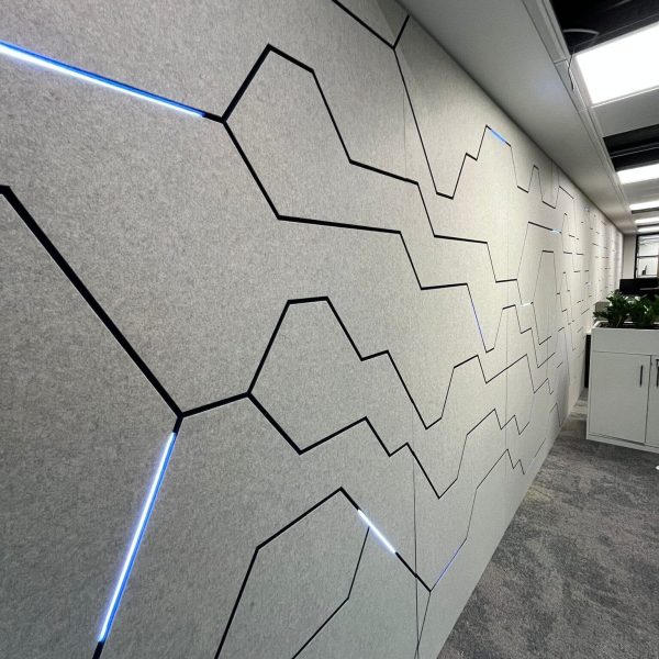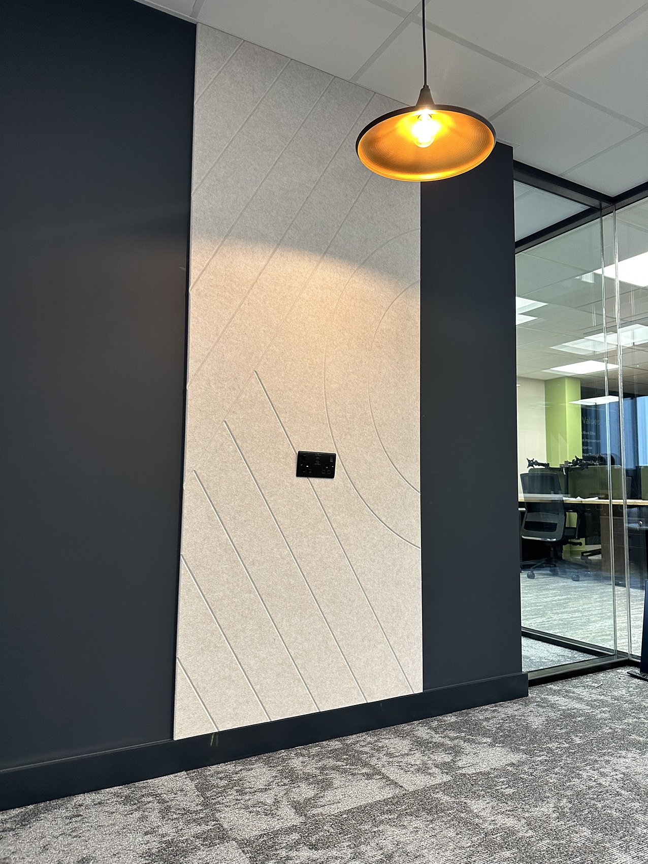 Our acoustic wall treatments offer a highly bespoke solution for enhancing both sound quality and visual appeal within any space. Designed with flexibility in mind, each panel can be fully customised through printed finishes and precision V-cutting, allowing for a wide range of colours, patterns, and shapes to suit your design vision. Whether installed directly onto walls and ceilings or suspended using wire kits for a more dynamic effect, these panels provide a seamless blend of functionality and creativity – transforming acoustic performance into a striking design feature.