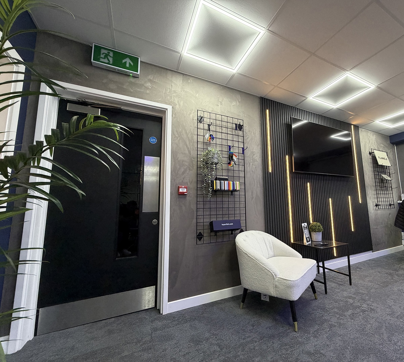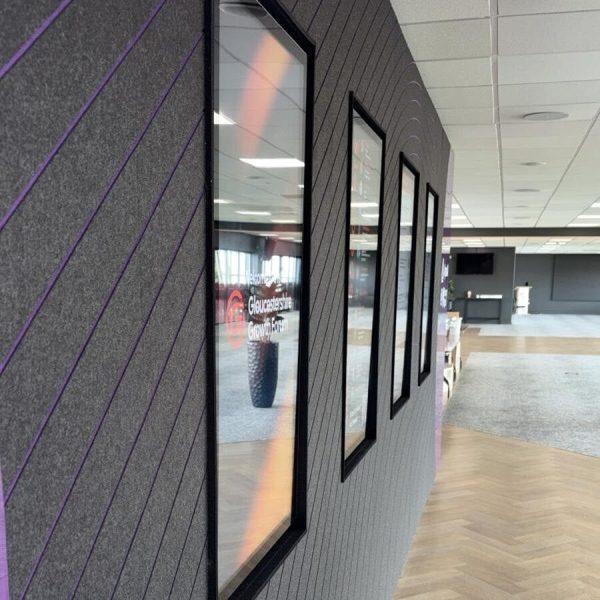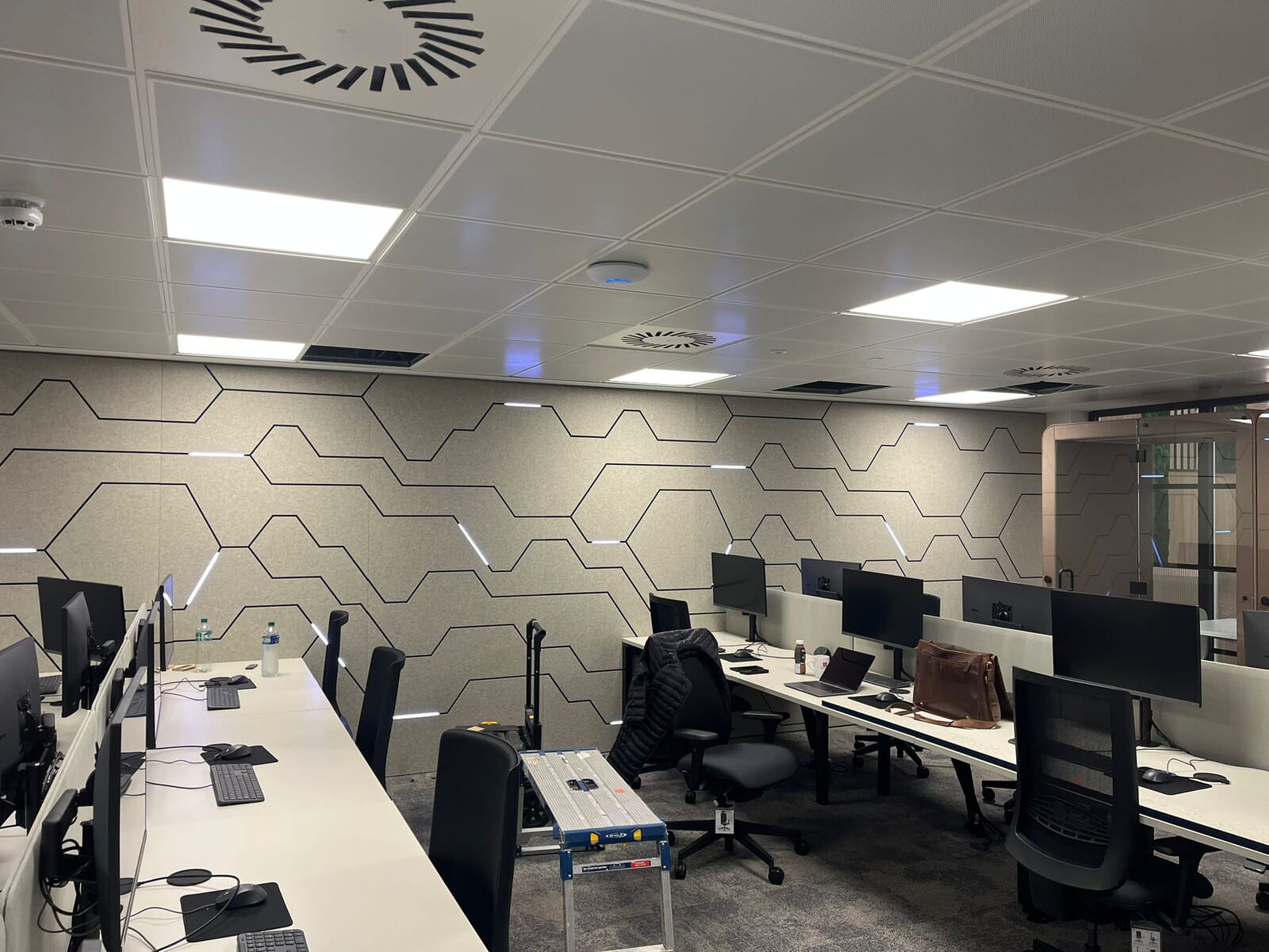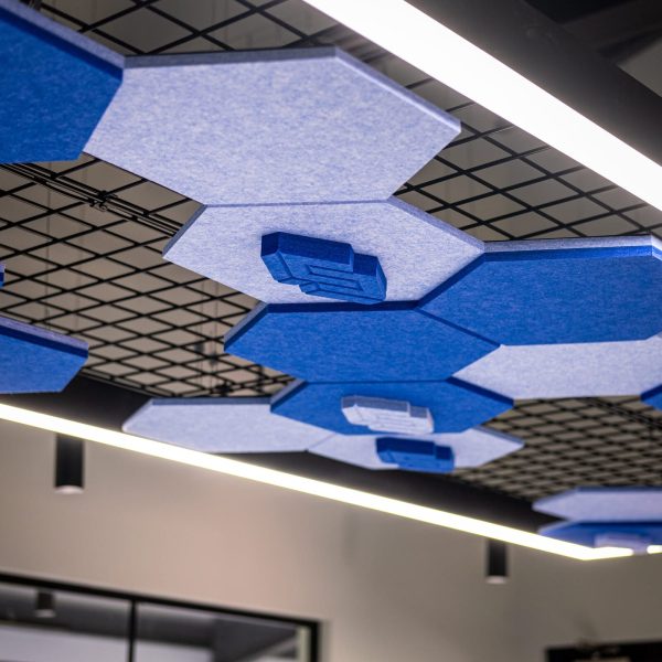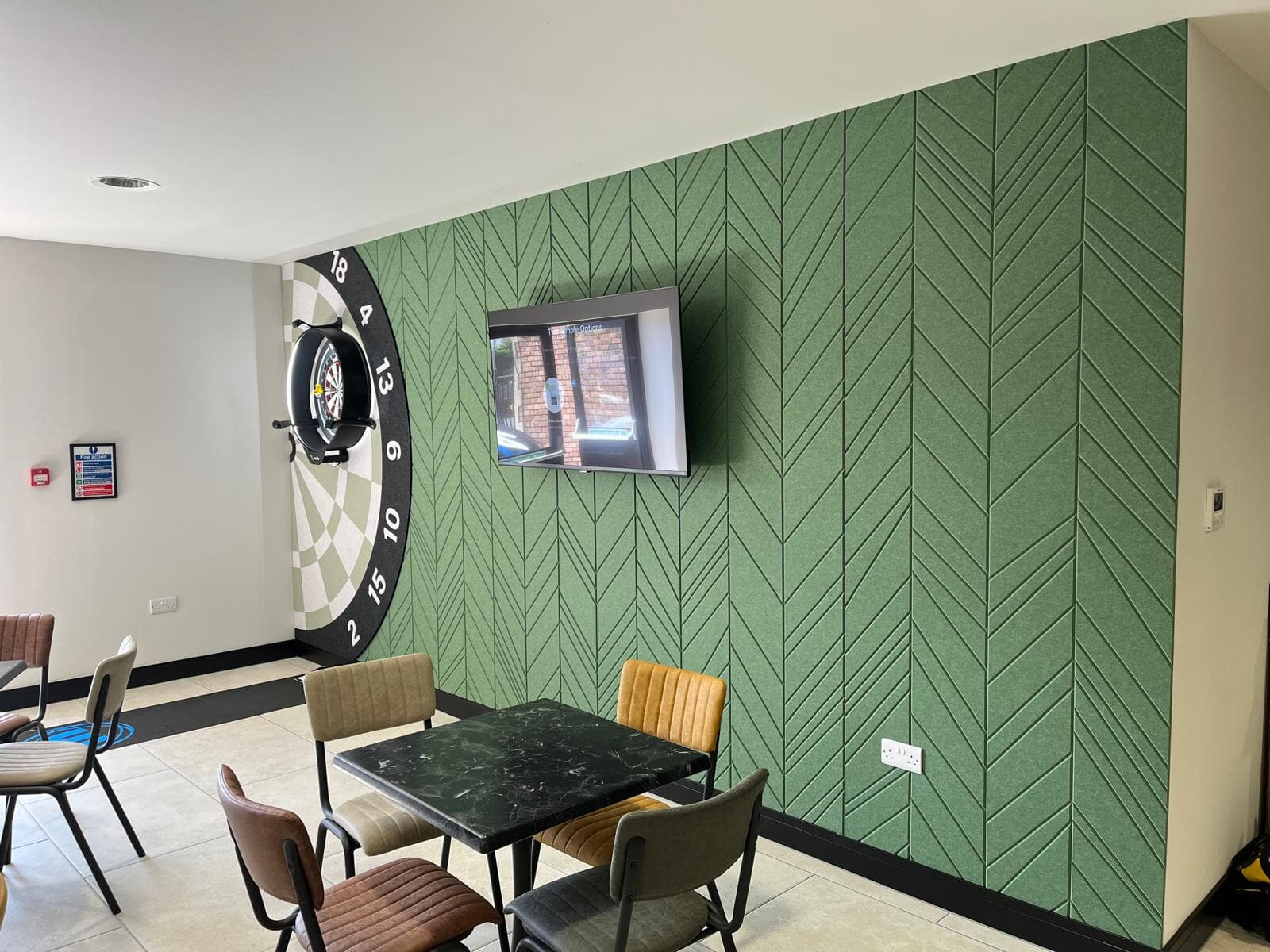 Our acoustic wall treatments offer a highly bespoke solution for enhancing both sound quality and visual appeal within any space. Designed with flexibility in mind, each panel can be fully customised through printed finishes and precision V-cutting, allowing for a wide range of colours, patterns, and shapes to suit your design vision. Whether installed directly onto walls and ceilings or suspended using wire kits for a more dynamic effect, these panels provide a seamless blend of functionality and creativity – transforming acoustic performance into a striking design feature.